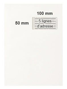 Pour 5 ou 6 lignes d’adresse : Fenêtre d’adressage de 50 x 100 mm