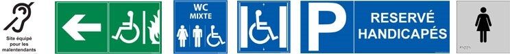 L'utilisation de pictogrammes normalisés est obligatoire pour que tout le monde puisse comprendre les panneaux signalétiques (par exemple : WC, sortie de secours, accès handicapés...). Pour les personnes malvoyantes, pensez aux plaques avec textes en relief et traduction en braille.