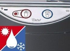 Certaines fontaines à raccordement sur le réseau peuvent proposer de l’eau fraîche et/ou de l’eau chaude. Elles fonctionnent comme un freezer de réfrigérateur : l’eau passe à travers un serpentin refroidi /réchauffé par un échangeur thermique. Elle est donc mise à température (froide ou chaude) au fur et à mesure de la consommation, sans contact avec l’air ni stagnation dans la cuve. Cela garantit une hygiène sanitaire parfaite.