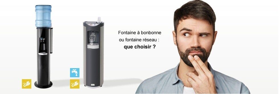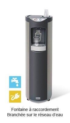 La fontaine à raccordement sur le réseau d’eau est une fontaine qui fournit de l’eau de ville filtrée de façon illimitée. Réalisée par un professionnel, l’installation de ce type de distributeur nécessite une prise électrique et un accès à une arrivée d’eau potable. Elle se fait généralement dans un couloir, une cafétéria ou une salle de pause.