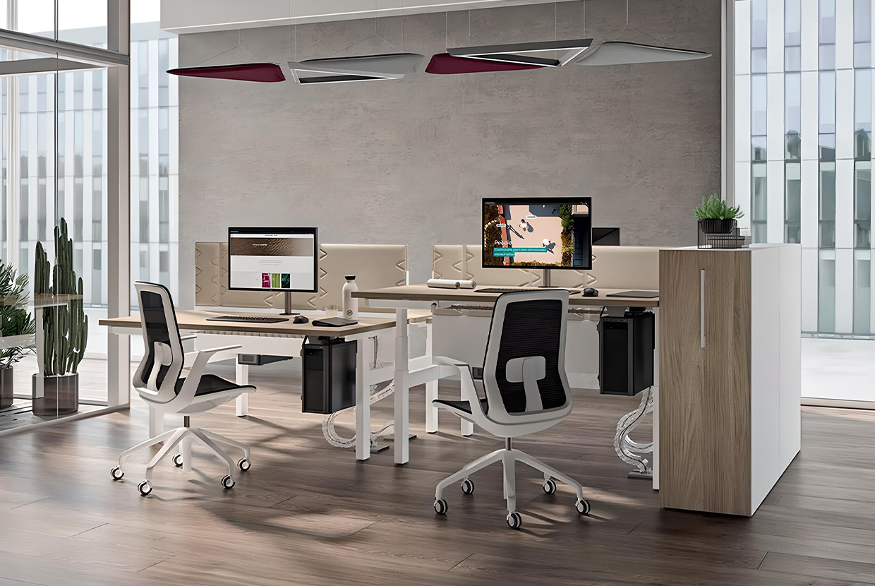 Pôle de 2 bureaux assis-debout Ergomaxx réglage électrique en hauteur avec top access