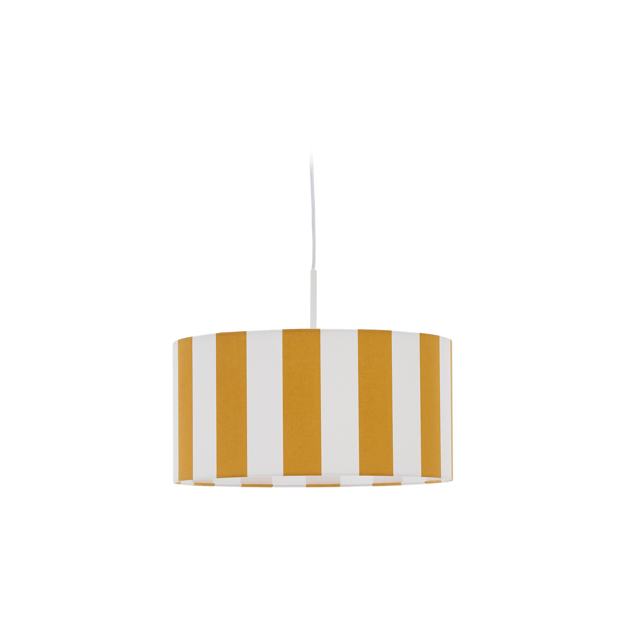 Abat-jour pour plafonnier à rayures jaune et blanc.