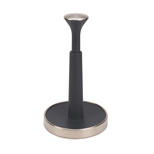 Description détailléeSupport pour rouleau d'essuie-tout, Bords relevés pour que le rouleau reste bien en place, Avec découpe facile, Dimensions : H 28 x L 16 x P 16 cm