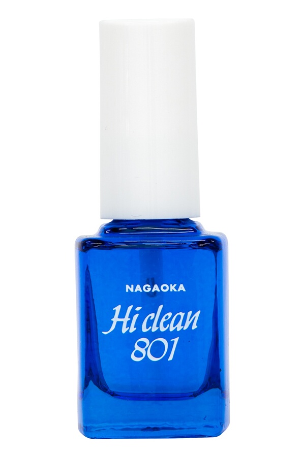 Description détailléePinceau et liquide pour nettoyer le diamant de la cellule vinyle, La poussière est retenue par le pinceau puis se dépose au fond du flacon