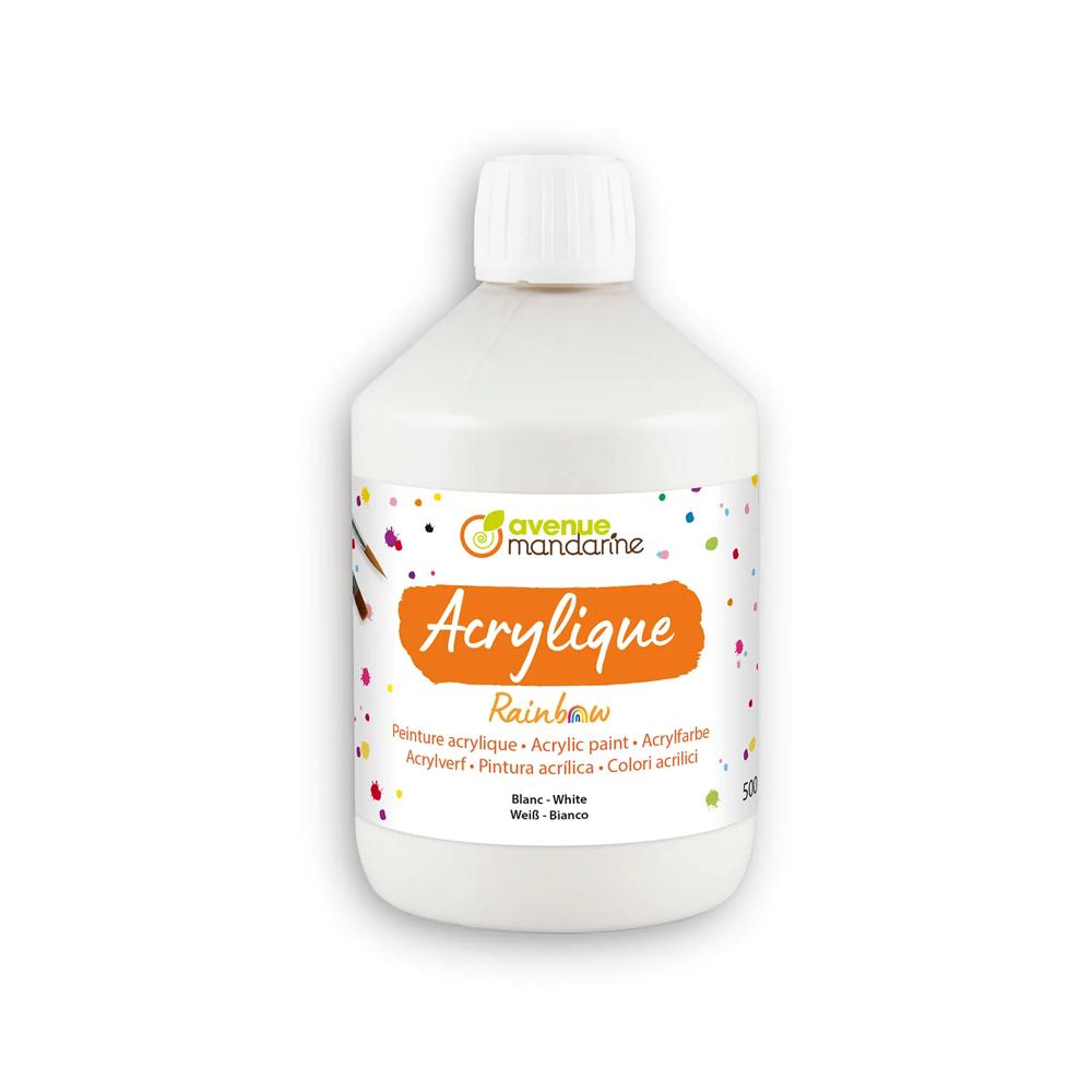 Pot de 500ml de peinture acrylique de couleur blanche. Format idéal pour les activités scolaires.