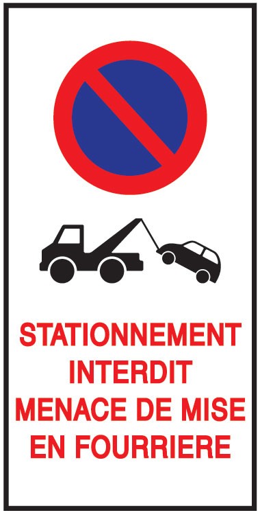Papier Autocollant "Stationnement Interdit - Menace de Mise en Fourrière"
