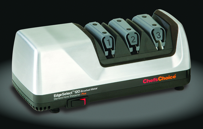 L'Aiguiseur électrique CC 120 Chef’s Choice est sécurisant, puisque la lame est toujours tournée vers le bas et jamais vers l'utilisateur lors de l'affûtage. Il est compatible avec les couteaux à lame lisse ou à lame crantée.