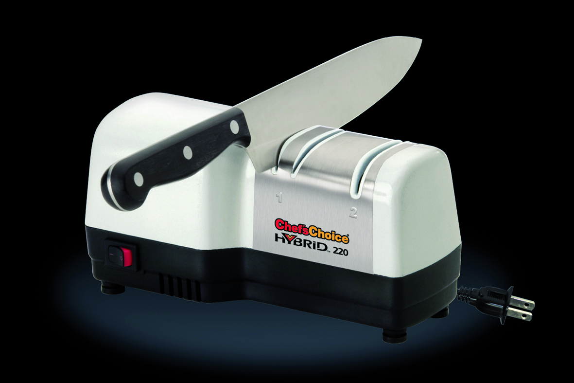 Le modèle H220 est un modèle Hybrid™ combinant affûtage électrique et manuel par disques abrasifs de diamants. Il propose un affilage en deux étapes, la première électrique complétée par l'affûtage manuel avec le concept Chef’s Choice de double biseaux plus durable. Cet aiguiseur convient pour l'aiguisage de couteaux à lame lisse ou crantée et est réservé à un usage non intensif.