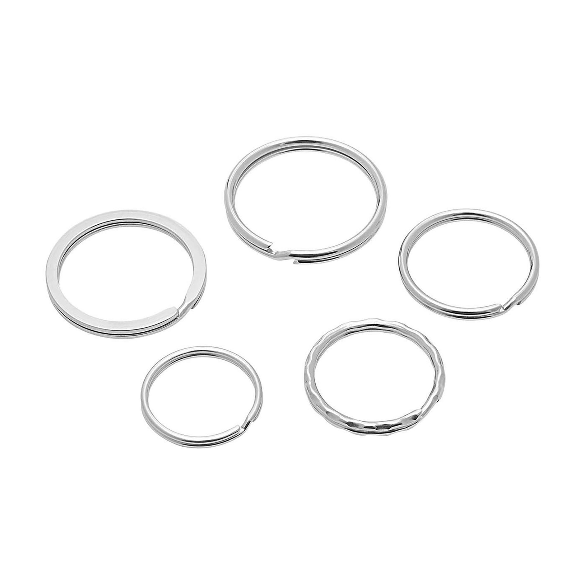 Description détailléeAnneaux porte-clés en métalAssortiment d'anneaux de Ø 25 mm, 30 mm, 35 mmAnneau Ø 30 mm onduléAnneau Ø 35 mm platEn acier renforcéNickelé brillant.Sachet de 15 anneaux.