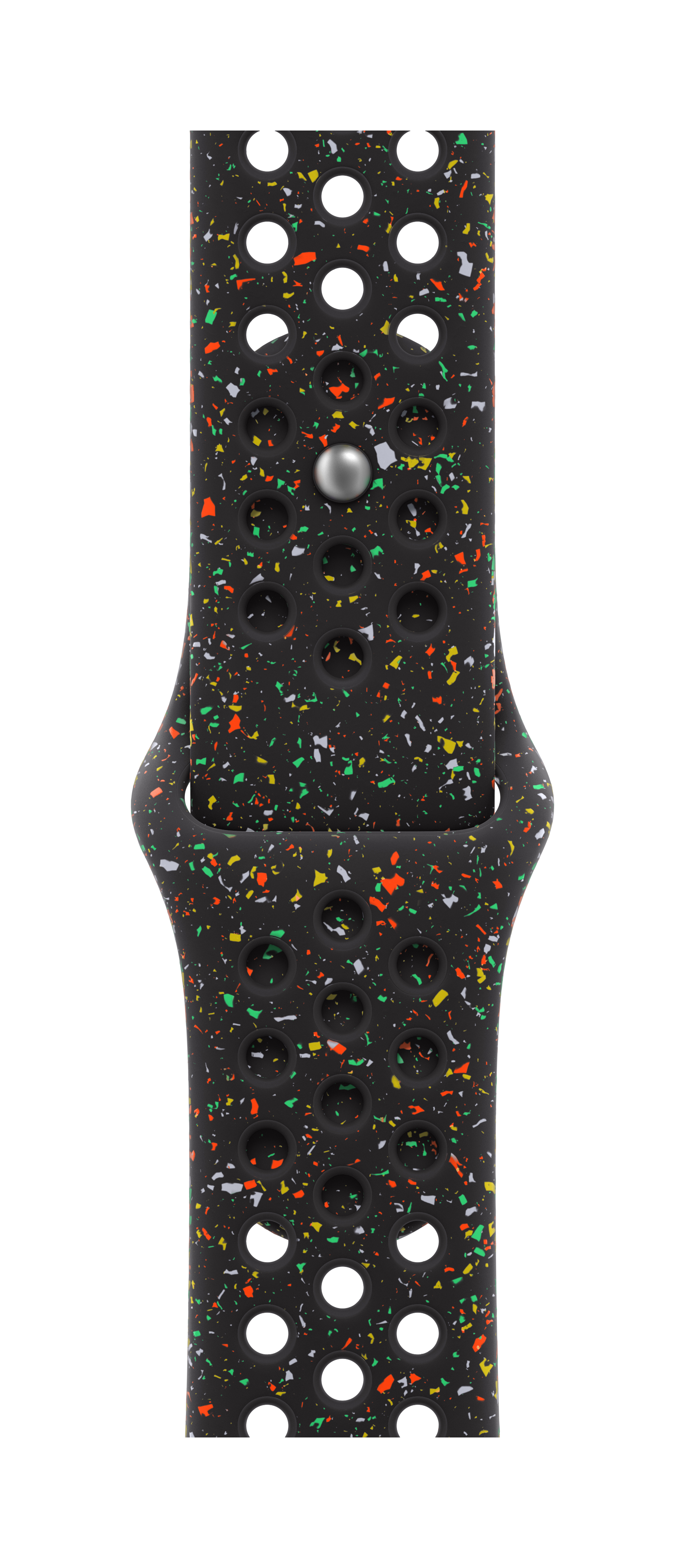 Doté de perforations moulées par compression pour une meilleure aération, le Bracelet Sport Nike est solide et résistant, mais aussi étonnamment doux. Il se pare de flocons colorés formant un motif aléatoire qui rend chaque bracelet totalement unique. Son matériau souple et dense épouse avec élégance la courbe de votre poignet et vous procure une grande sensation de confort. Un système de fermeture à clou et passant en aluminium, sur lequel est gravé le logo Run Swoosh, confère au clou une agréable finition mate.
