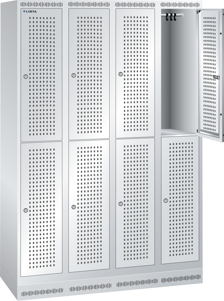Optimisez l’organisation de vos espaces professionnels avec l’armoire-vestiaire deux niveaux, idéale pour les ateliers, bureaux ou collectivités. Chaque compartiment offre une séparation pratique haut/bas pour un rangement individuel efficace. Sa porte battante en tôle pleine, lisse ou perforée, assure robustesse et ventilation optimale. Équipée d’un rayon à chapeau, d’une tringle avec patères mobiles et d’un porte-serviette, elle garantit un confort d’utilisation au quotidien. Disponible en plusieurs dimensions, avec ou sans socle, elle s’adapte parfaitement à vos besoins d’aménagement.