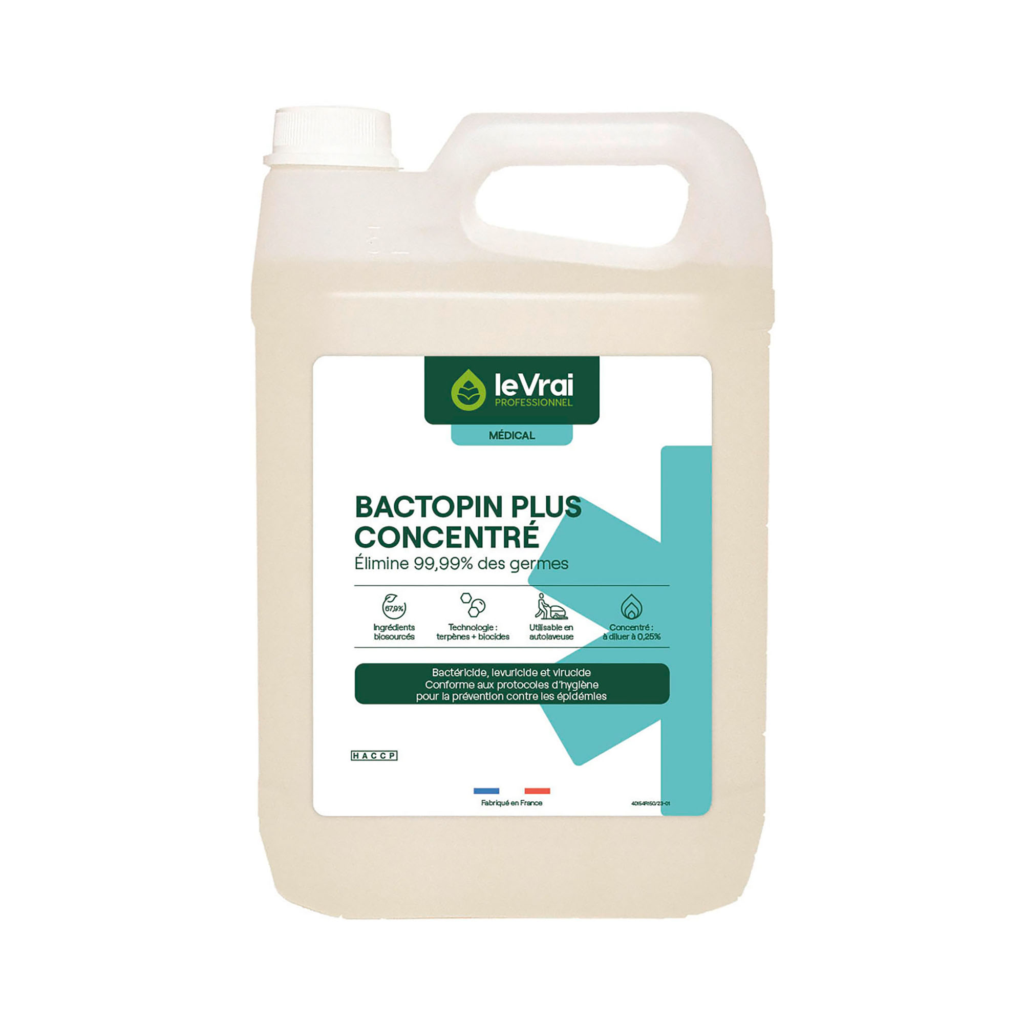 Bactopin plus Ultra concentré possède une formule désinfectante à large spectre conforme aux protocoles d'hygiène pour la prévention et contre les épidémies.