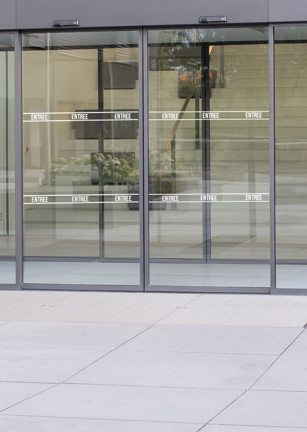 Bande adhésive pour porte vitrée ENTREE. Idéal sur vos portes d'entrée de magasin ou entreprise, sur portes automatiques.