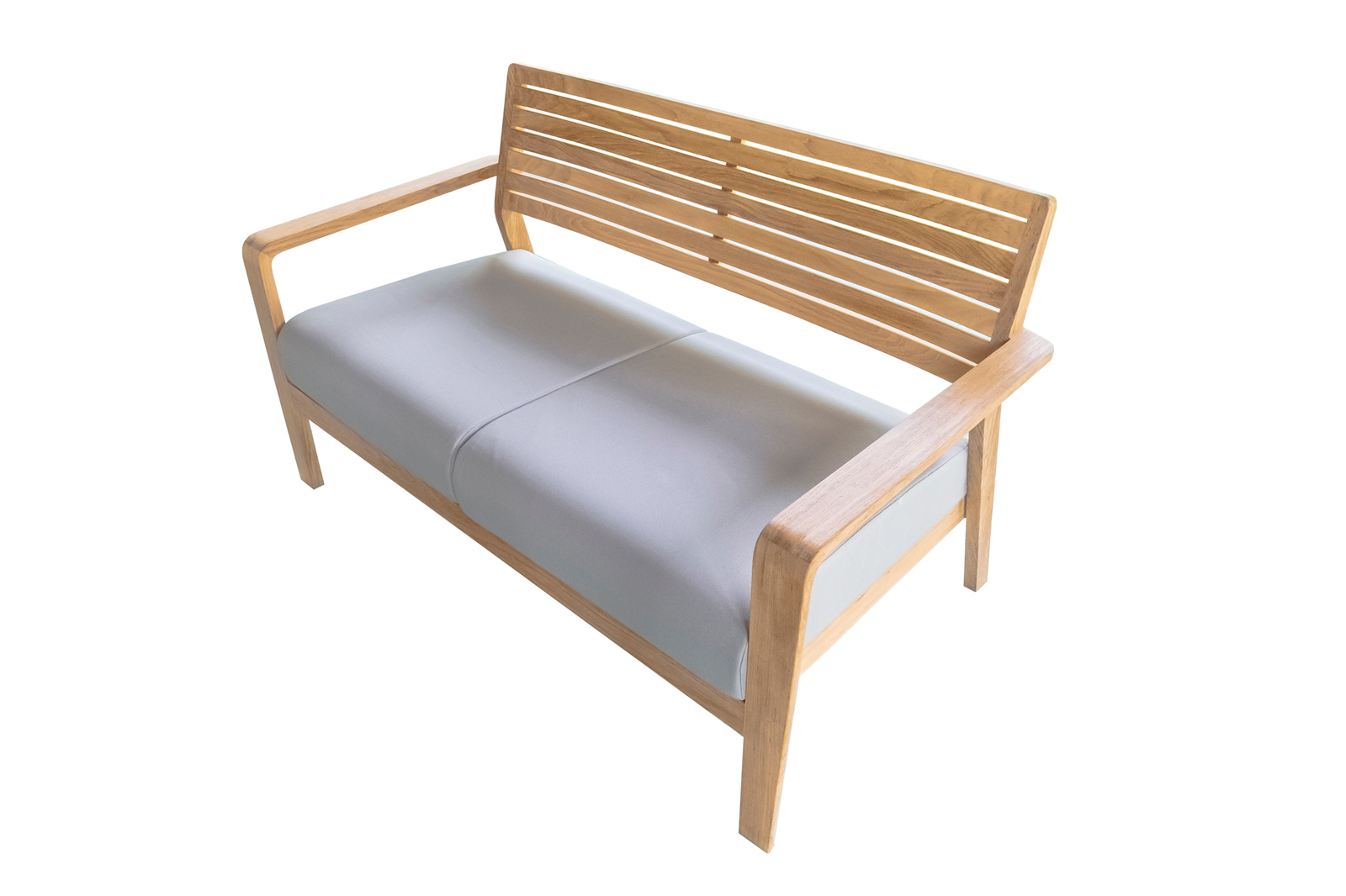 Banquette CLAIN en teck: des matériaux nobles mis en valeur par une ligne contemporaine et raffinée.
