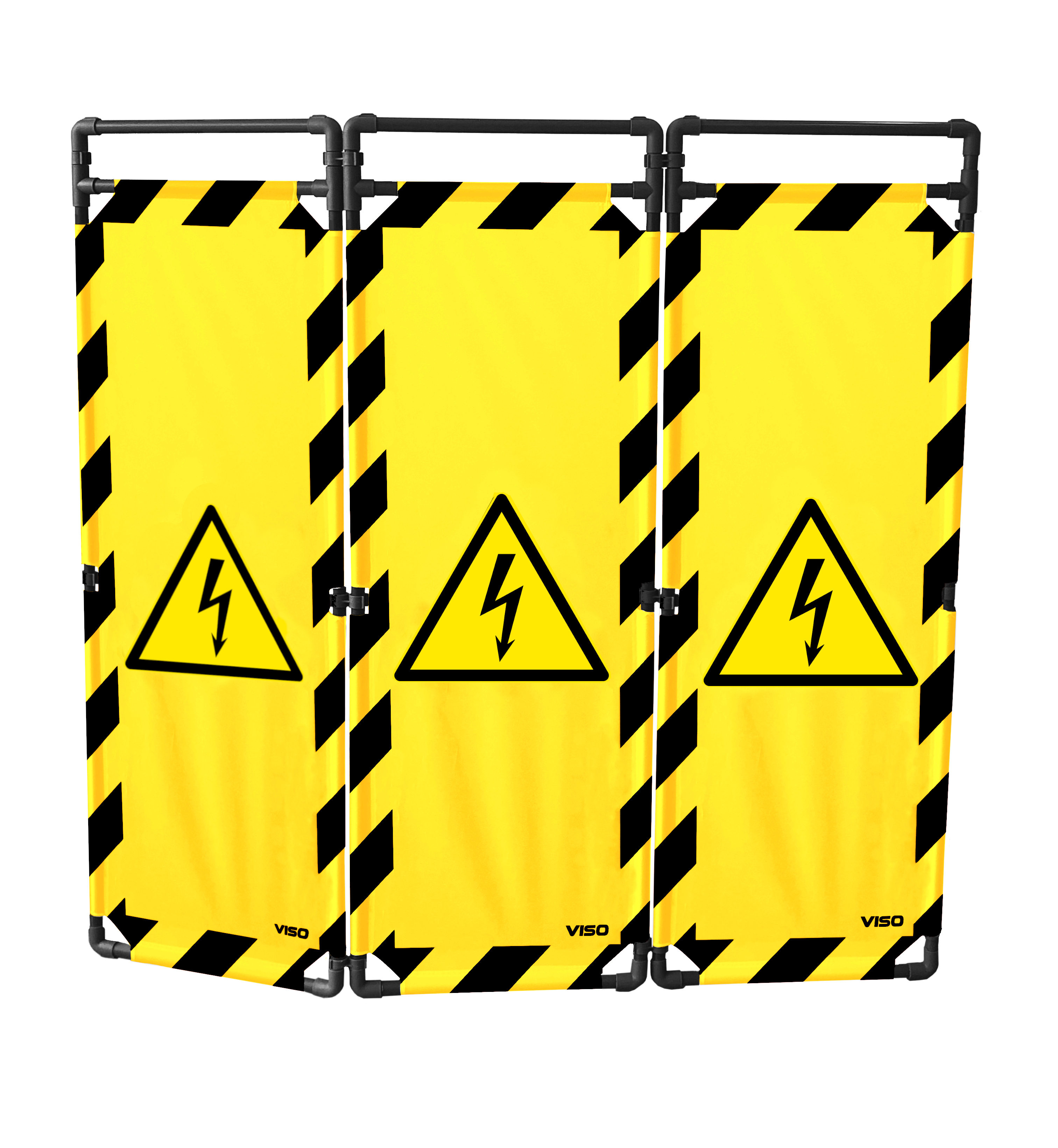 Barrière d'intervention PVC - 3 vantaux 1,80m - Logo DANGER ÉLECTRICITÉ - Noir/Jaune