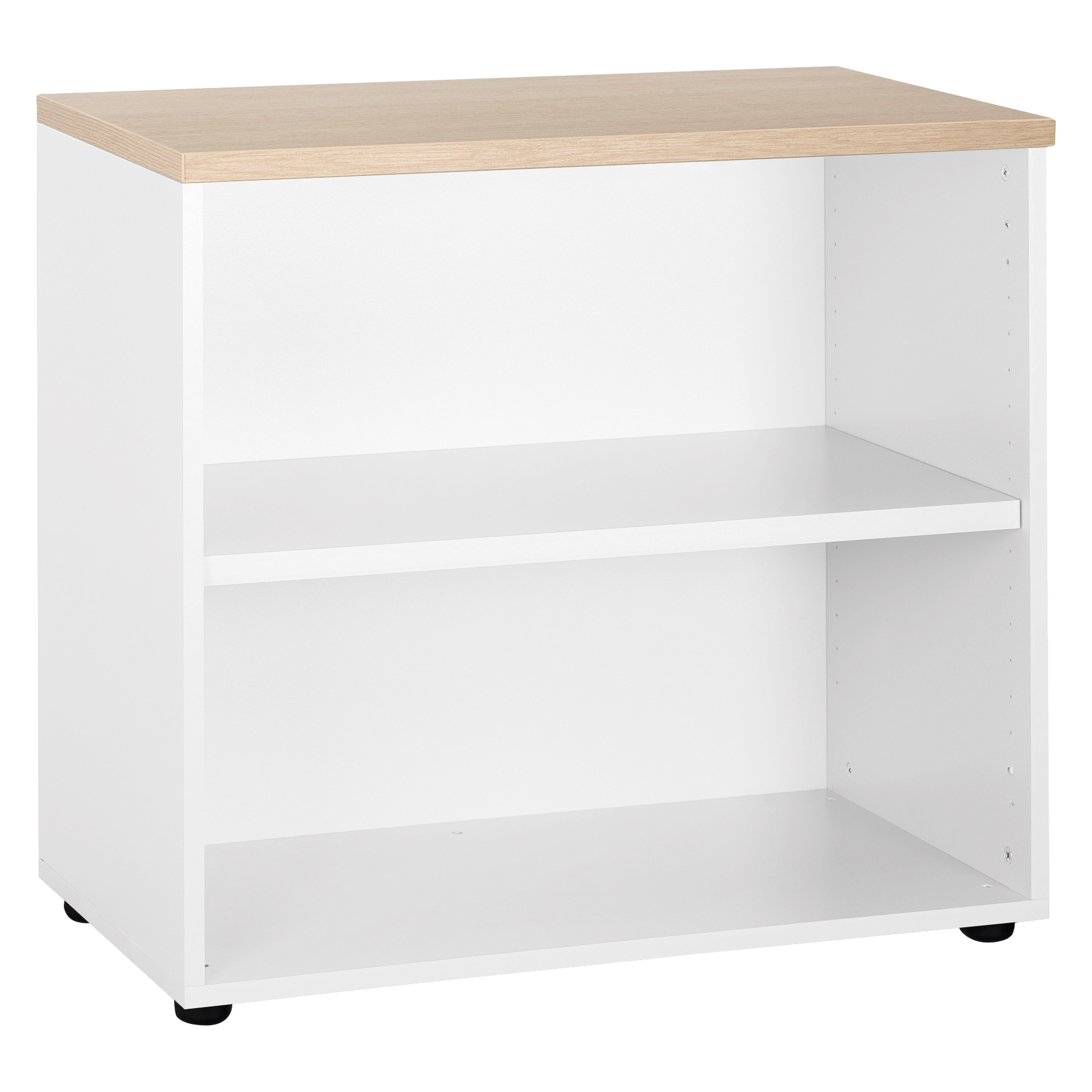 Optez pour la bibliothèque basse Squadra à hauteur de bureau avec fond, idéale pour organiser vos livres, dossiers et documents au quotidien.