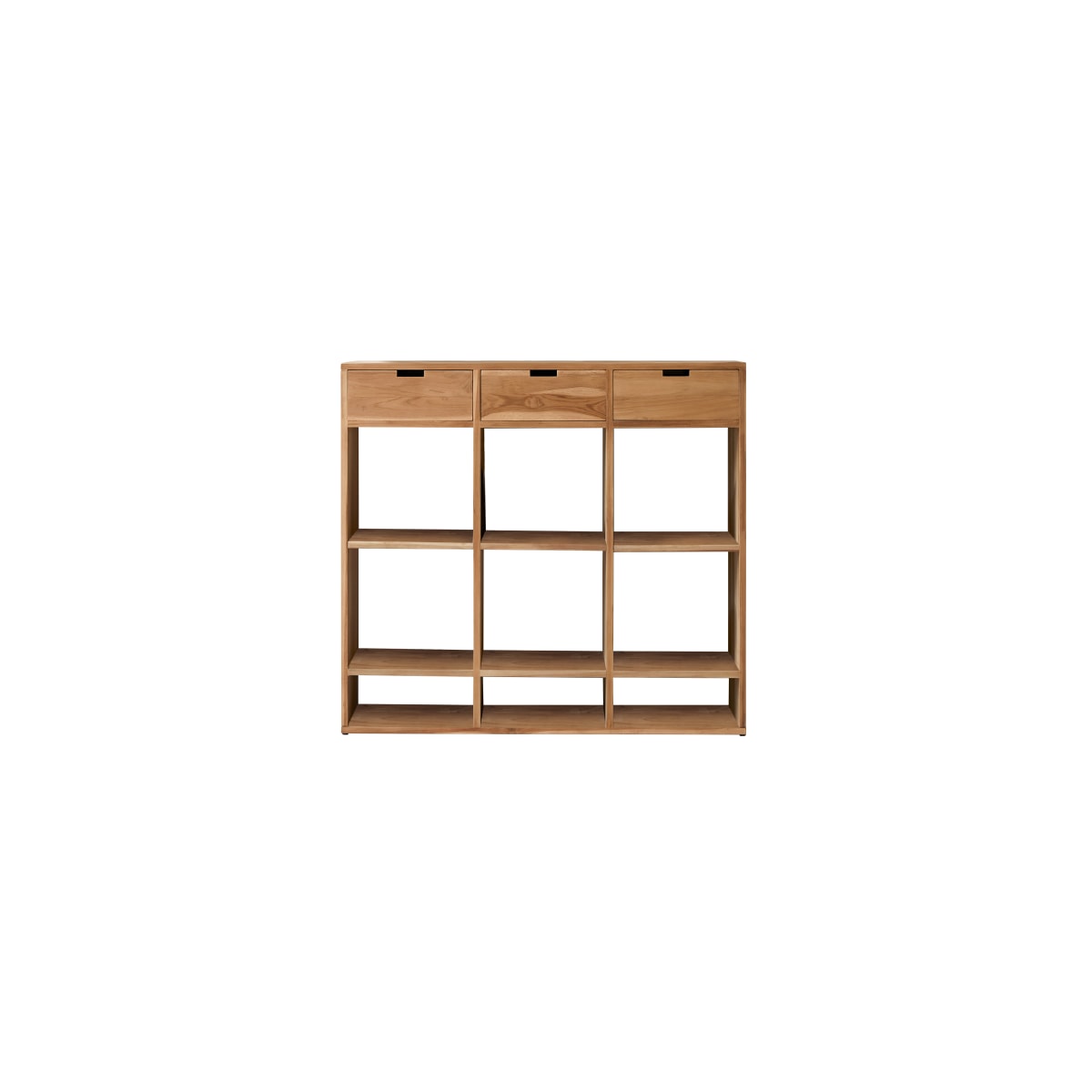 Découvrez cette bibliothèque Miho en teck massif FSC®, de la marque Tikamoon ! Constituée de 9 niches et 3 tiroirs, elle vous permettra de ranger tous vos livres et accessoires.