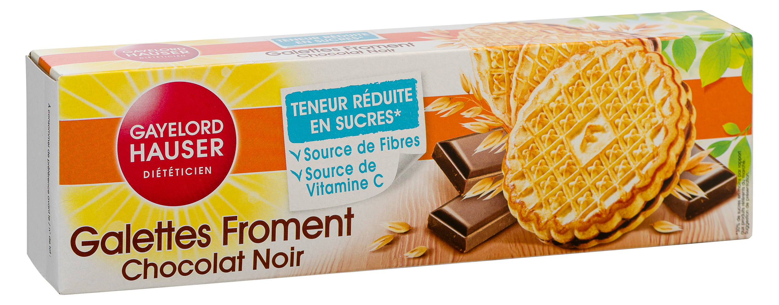La galette au Froment Chocolat noir Gayelord Hauser est un délicieux biscuit qui allie le goût authentique du froment et l'intensité du chocolat noir.