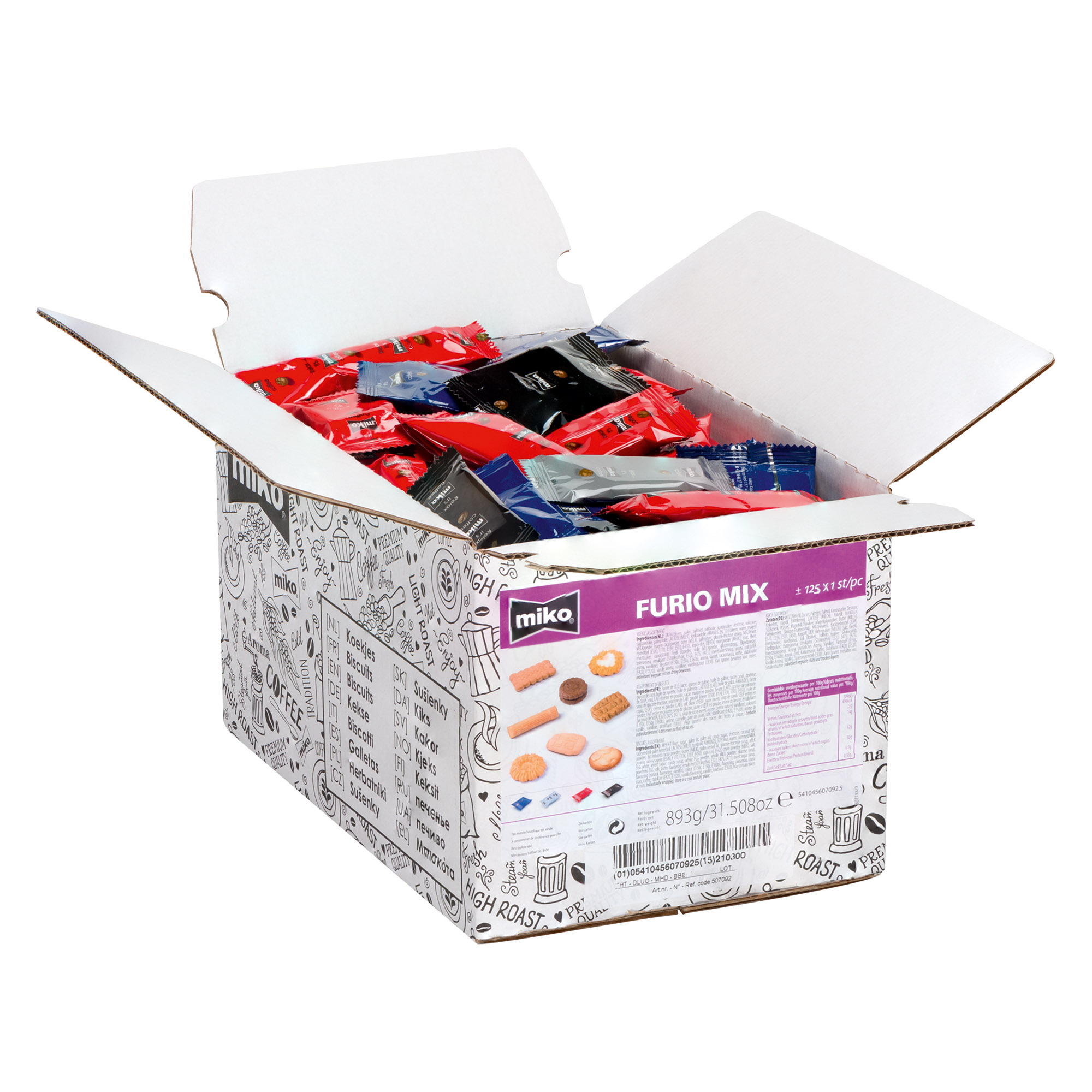 Description détailléeAssortiment de 8 variétés de biscuits secs ou chocolatés emballés individuellement. La composition de l'assortiment, les ingrédients et le poids évoluent au fil des saisons.Photo non contractuelle.Carton de 125 pièces. À consommer dans le cadre d'une alimentation variée et équilibrée et d'un mode de vie sain.