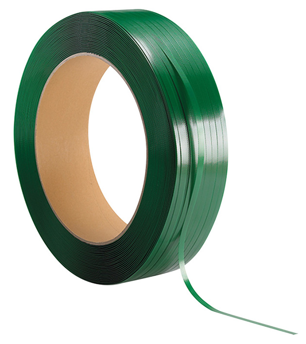 Bobine de cerclage : Feuillard polyester PET haute résistance. Découvrez le feuillard polyester PET de couleur verte, conçu pour garantir la sécurité de votre transport sans risque de coupure. Ce produit offre une excellente résistance aux chocs et aux variations climatiques, tout en maintenant une tension constante des charges cerclées. Son matériau imputrescible constitue une solution fiable pour protéger vos marchandises.