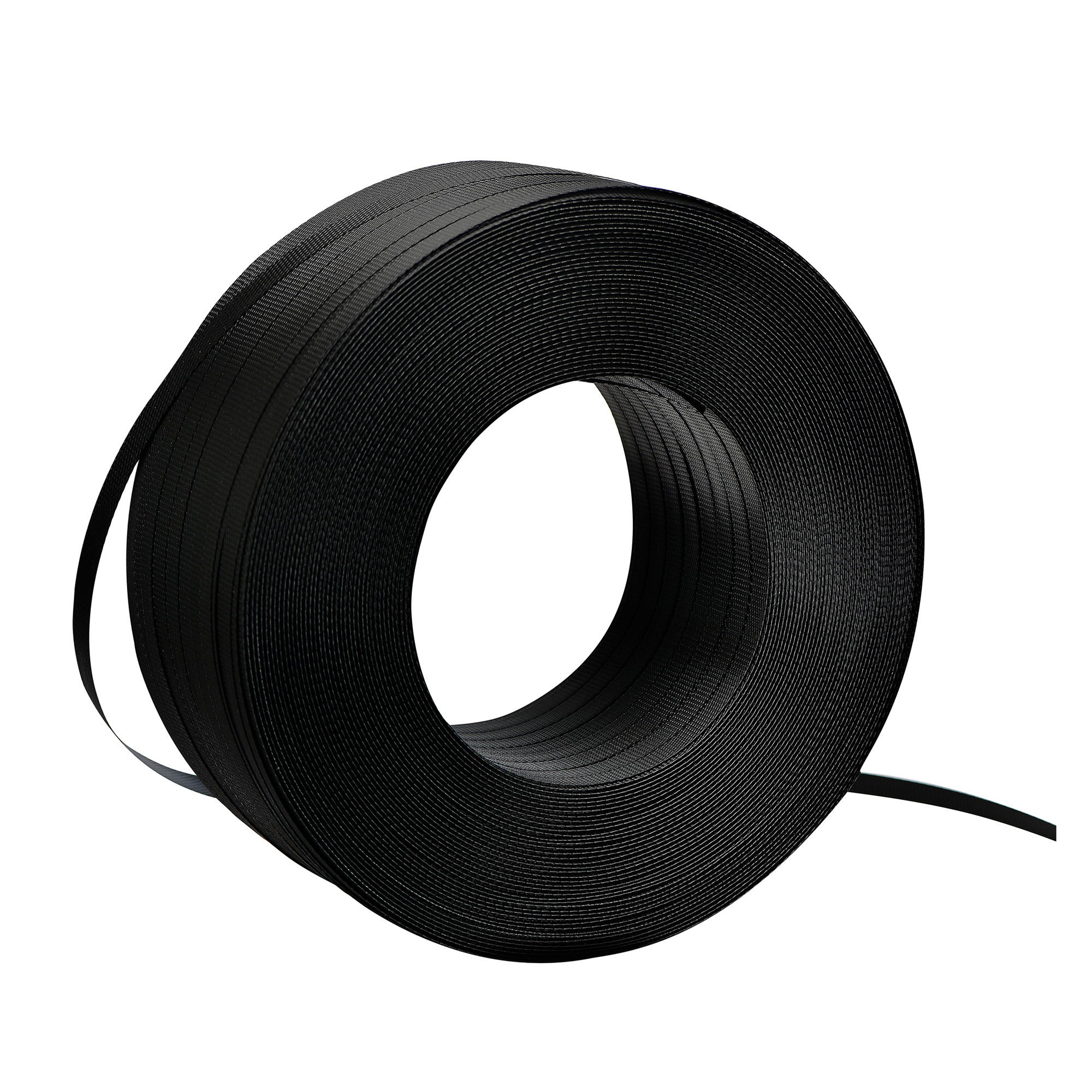 Contient 1 bobine de feuillard polypropylène recyclé noir