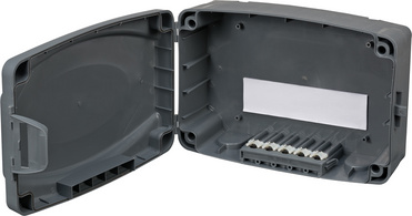 Description détailléeAnthracite, (L)340 x (P)230 x (H)125 mm, pour une alimenta- tion électrique sûre à l'extérieur,plusieurs entrées/sorties de câbles, crochets pour la suspension murale, en plastique
