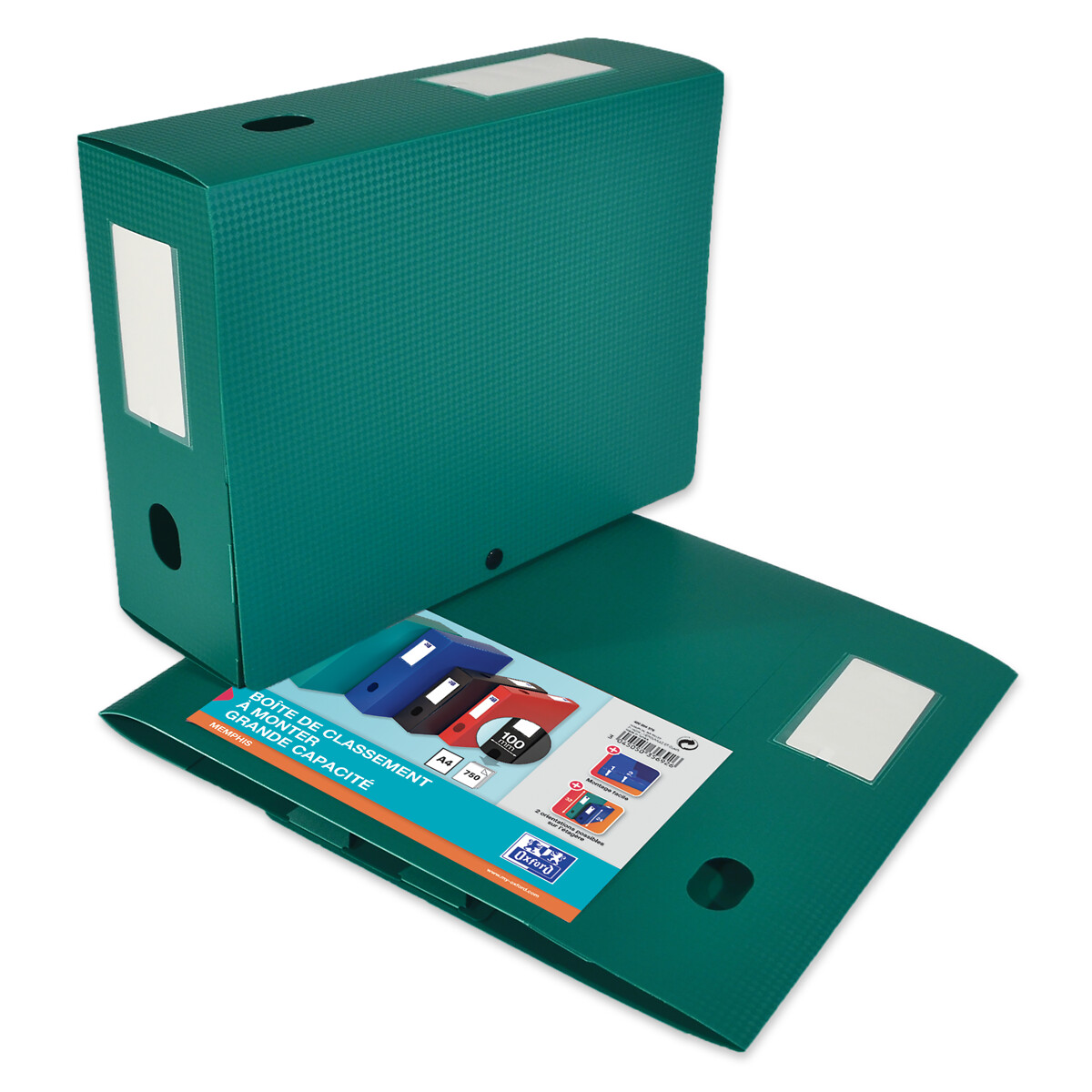 Boîte Oxford grande capacité memphis à plat 24x32cm dos 100mm avec bouton pression couverture polypro vert