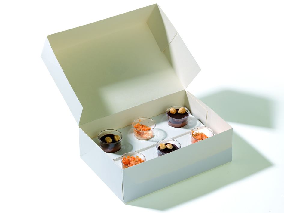 La boîte à verrines est conçue en carton blanc, une matière à la fois résistante et légère, qui protège efficacement vos verrines tout en étant facile à manipuler. Ses dimensions (longueur : 26 cm, largeur : 18 cm, hauteur : 8 cm) ont été spécialement pensées pour s'adapter aux calages de verrines, vendus séparément.