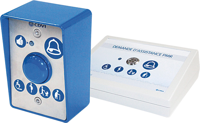 Borne d'accueil multi-sensorielle pour rampe d'accès mobileLes plus produitAdapté à la norme PMRIndique la prise en compte de la demande par un signal audio et visuelHaute résistance au vandalisme (HRV)Fabriqué en FranceCompositionUn Boitier d'Appel Extérieur ultra résistant traité époxy en zamak résistant aux chocs, écarts de température et corrosion : Pose facile, sans raccordement électriqueBouton d'appel bleu ergonomique conçu pour un contact ultra sensibleConfirmation de prise en charge de l'appelGrande longévitéMini-switch haute qualitéÉmetteur et récepteur autonomes (piles lithium)Confomité RoHSCertification CEDimension : 122,5 x 82.5 mm Un Boitier Intérieur de Réception d'Appel : Fonctionnement radio Retour de prise en charge de l'appel Alimentation 230v LED bleueATTENTION : Ne pas installer la borne sur un poteau métallique. En effet, l'antenne doit ressortir du boîtier pour fonctionner. Si celle-ci est glissée dans le poteau métallique, il fera office de cage de Faraday et la communication radio ne fonctionnera pas. Faire attention aux installations à proximité de la cage qui peuvent rendre incompatible l'installation. Contexte et descriptifLa personne à mobilité réduite se présente devant la borne d'accueil placée à l'extérieur de votre batiment / commerce et appuie sur le bouton d'appel afin de manifester sa présence.Une lumière bleue et un signal sonore lui indiquent que sa présence a été signalée à l'intérieur de l'établissement. L'appel est reçu sur la borne de réception d'appel à l'intérieur et se manifeste par un signal lumineux bleu et une alerte sonore.La personne réceptionnant l'appel envoie alors une confirmation de prise en charge via le bouton lumineux du pupitre qui communique avec la borne extérieure.La personne en attente à l'extérieur de l'établissement voit alors la LED bleue s'éclairer accompagnée d'un signal sonore ou d'un message vocal lui indiquant qu'elle va être prise en charge.Rappel : Depuis début 2015, le Carillon d'Appel est obligatoire!Dans le cadre de la réglementation, un carillon d'appel est obligatoire et doit être positionné entre 0,90 et 1,30m de hauteur et à plus de 40 cm d'un coin de mur. Il doit être contrasté par rapport à son support, facilement repérable (par une signalisation visuelle), comporter un système qui indique son bon fonctionnement. De plus l'usager doit être informé de la prise en compte de son appel.