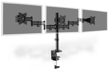 Description détailléePivotant, noir, capacité de charge par bras: 8 kg, inclinaison ajustable jusqu'à 30 degrés, rotatif à 360 degrés, VESA: 75 x 75 mm et 100 x 100 mm, poids: 6,4 kg, dimensions: (L)1.448 x (P)550 x (H)120 mm