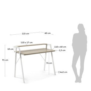 Bureau Aarhus en mélamine finition naturelle et pieds en acier blanc 115 x 60 cm