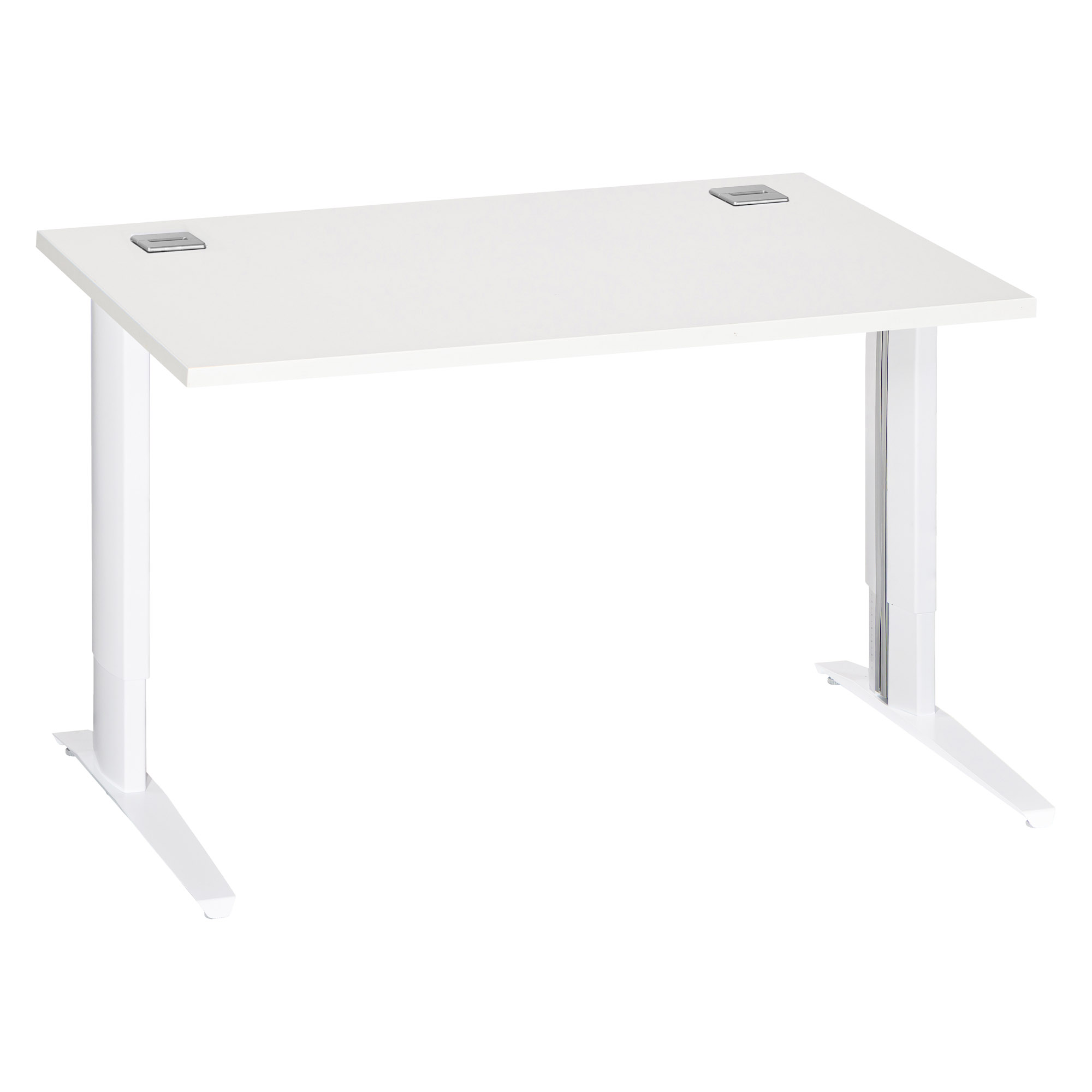 Pieds métal en L réglables en hauteur de H 67.5 à 87.5 cm (incluant le plateau) et poutre métal sous plateau pour plus de solidité et stabilité. Crantage et réglage possible tous les millimètres.