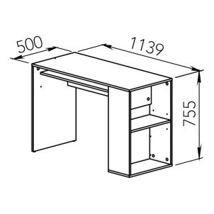 Bureau YALE avec étagère et niche de rangement ouverts qui peuvent être montés à gauche ou à droite pour s'adapter à vos besoins et envies, il possède également une tablette de rangement sous le plateau. Idéal pour le télétravail ou le home office.