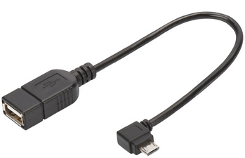 Description détailléeFiche mâle micro USB-B coudé - fiche femelle USB-A, surface contact : nickelé, AWG 28, double blindage, gaine : moulé, câble / fiches : noir