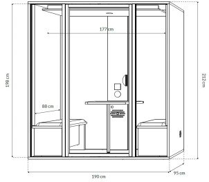 La cabine assure une réduction sonore mesurée jusqu’à –30,5 dB, permettant de limiter les nuisances sonores et de préserver la confidentialité des conversations. Ces performances s’appuient sur des tests réalisés par des experts d’un bureau d’étude acoustique spécialisé.