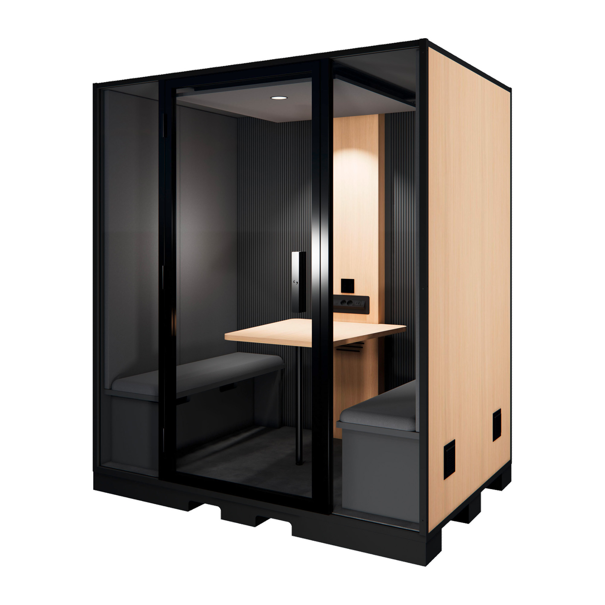 Offrez à vos équipes un espace de réunion ou de travail à 4 parfaitement isolé au sein d’un environnement industriel : la Blabla Quatro Indus combine robustesse, acoustique et mobilité, pour créer une bulle calme au cœur des ateliers. Cabine déplaçable grâce au socle réglable par vérin et compatible chariot élévateur / transpalette.