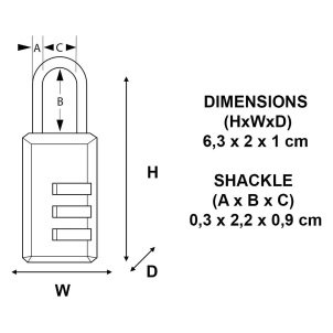 Cadenas à 3 chiffres - acier - noir - 20 mm