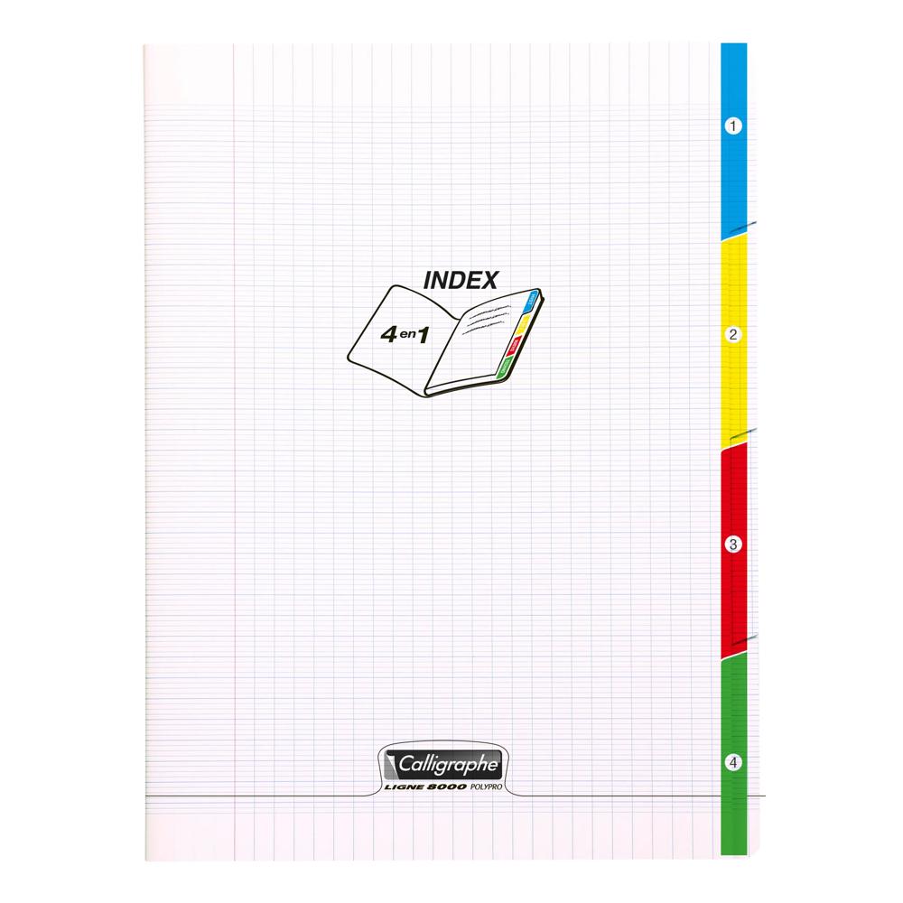 Sa couverture en polypropylène incolore assure à la fois une grande résistance et une légèreté appréciable. Transparente, elle permet de visualiser rapidement le contenu du cahier et d'identifier facilement les différentes parties ou matières grâce à ses 4 encoches.