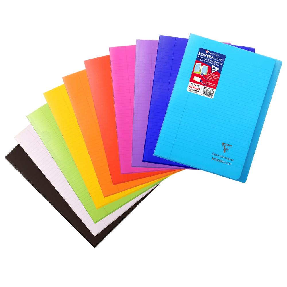 Optez pour la praticité et la qualité du Cahier piqué Koverbook A4 96 pages ligné + marge couverture polypropylène transparent - Assortis de la marque Clairefontaine, l'alliance parfaite entre un cahier et un protège-cahier tout-en-un !