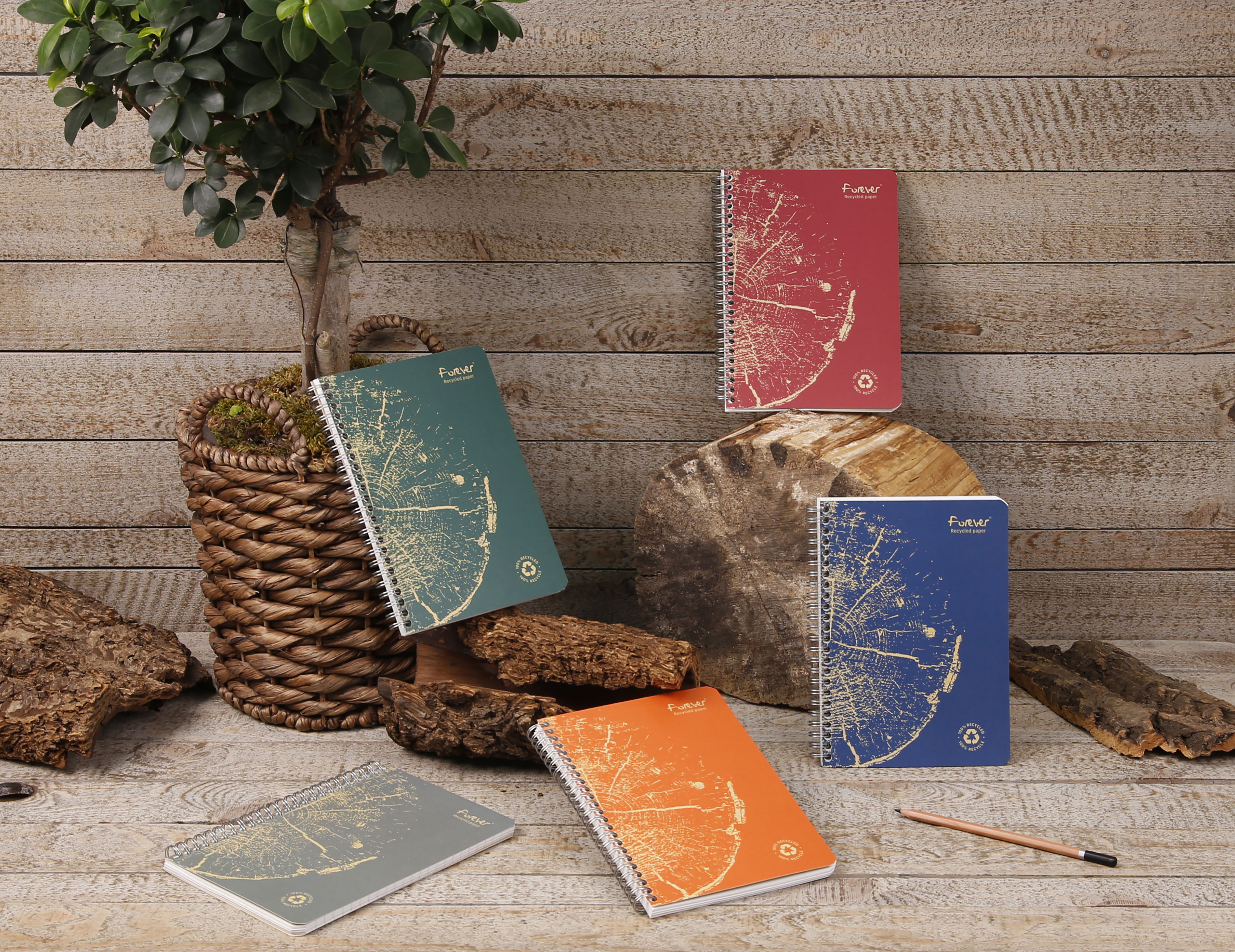 Le cahier recyclé Forever est fabriqué entièrement à partir de vieux papiers. Son papier Premium recyclé est produit sans désencrage ni traitement au chlore.