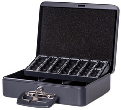 Description détailléeDimensions: (L)300 x (P)255 x (H)93 mm en acier laqué, cylindre de sécurité avec 2 clés, le trieur de pièces accepte les 8 types de pièces euro, casier amovible avec 3 compartiments pour billets