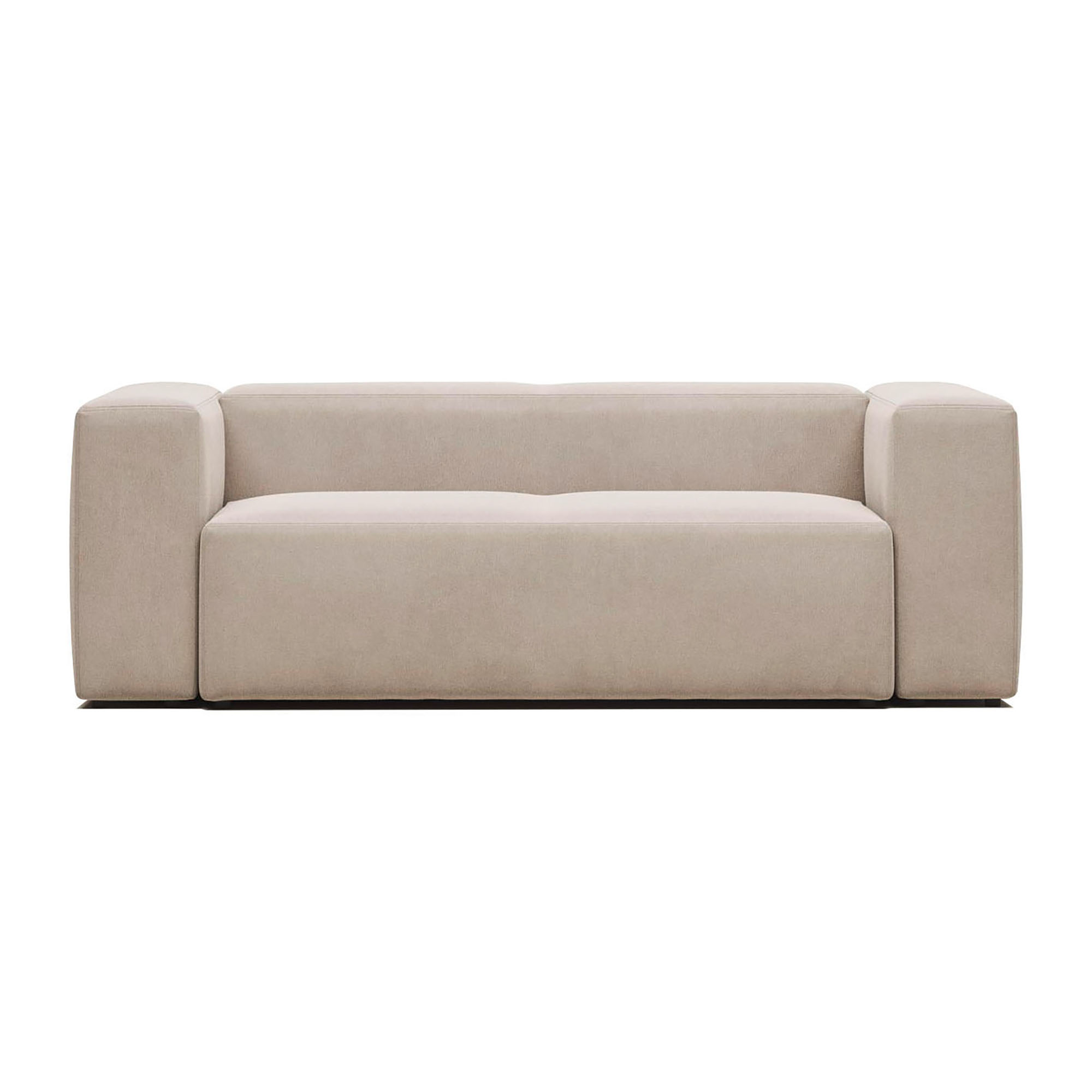Canapé modulable 2 places avec revêtement en tissu structuré beige.