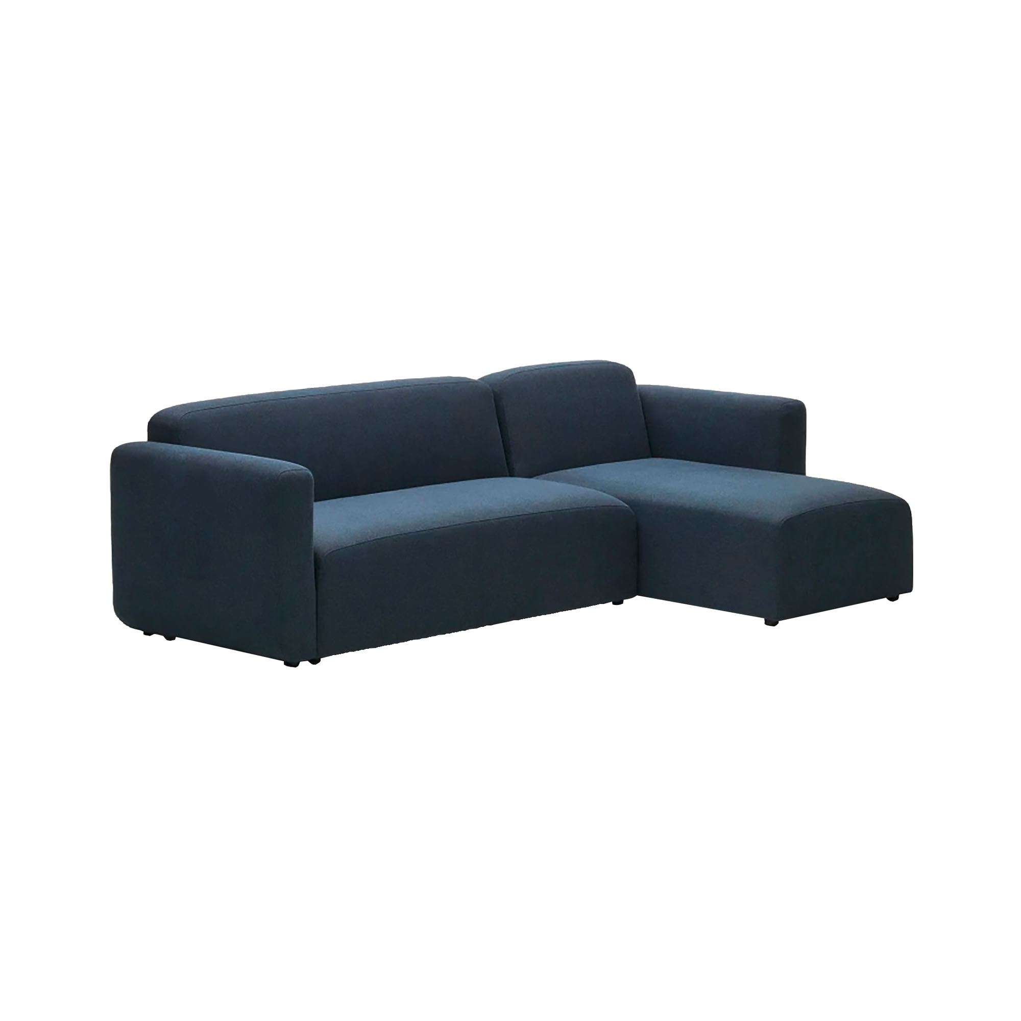 Canapé modulable 3 places avec méridienne et revêtement en tissu structuré bleu.