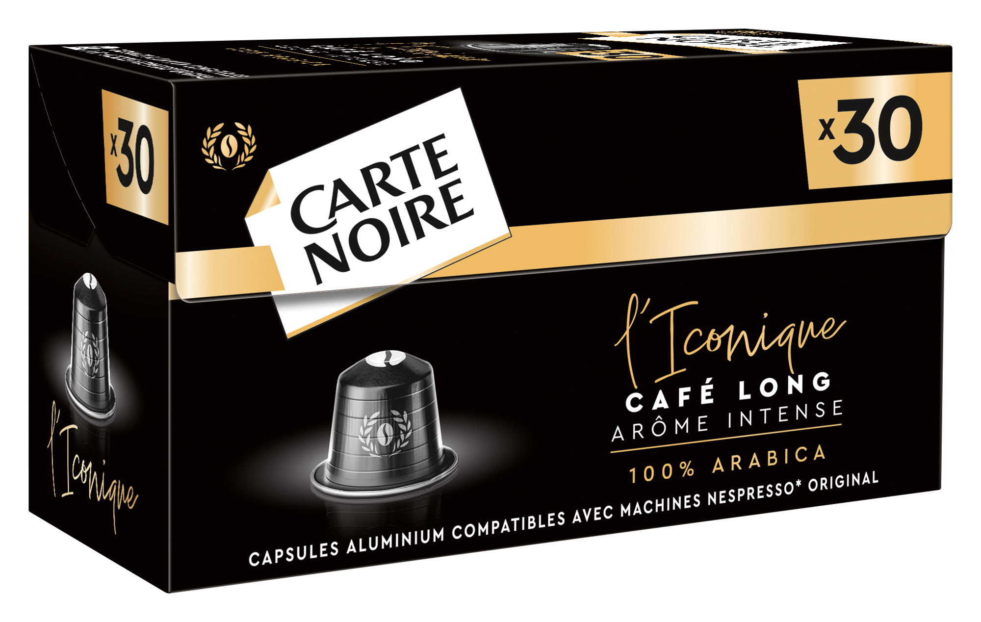 Description détailléeL’Iconique, c’est le café d’exception Carte Noire au goût unique et à l’arôme intense.Café pur arabicaIntensité N° 7Boîte de 30 capsules.Capsules compatibles avec les machines Nespresso®*.*Nespresso® est une marque d'un tiers n'ayant aucun lien avec CARTE NOIRE SAS.Compatibles avec toutes les machines à café à capsules commercialisées par Bruneau.