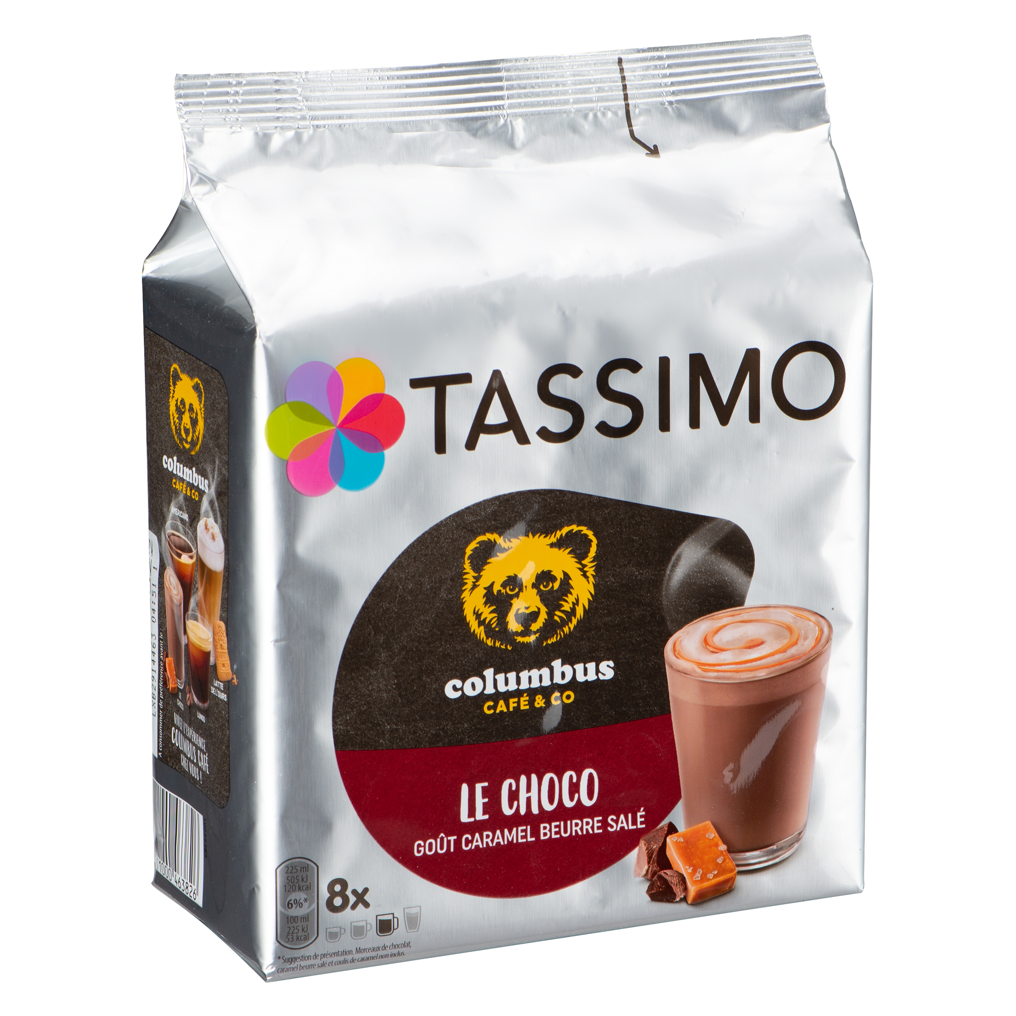 Les dosettes Tassimo Columbus Choco sont fabriquées à partir d'un mélange de lait et chocolat, avec un goût au caramel au beurre salé ce qui leur confère un goût équilibré et savoureux.