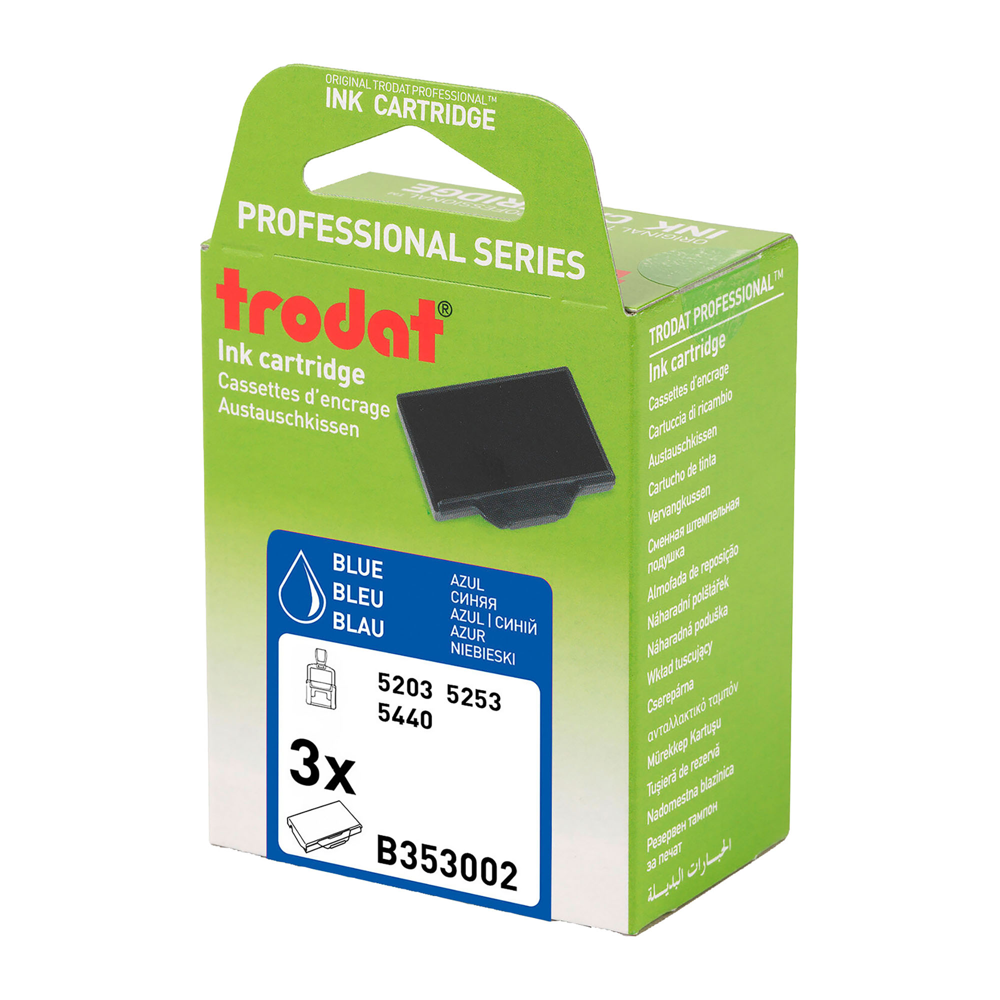 L'encre est indélébile selon les critères de la norme DIN ISO 14145-2. Le conditionnement des cassettes d'encre est fabriqué en carton recyclé et 100 % recyclable pour un impact environnemental réduit. Cassette d'encrage de rechange pour tampons à encrage automatique Professional 5203, 5440, 5440/L et 5253.