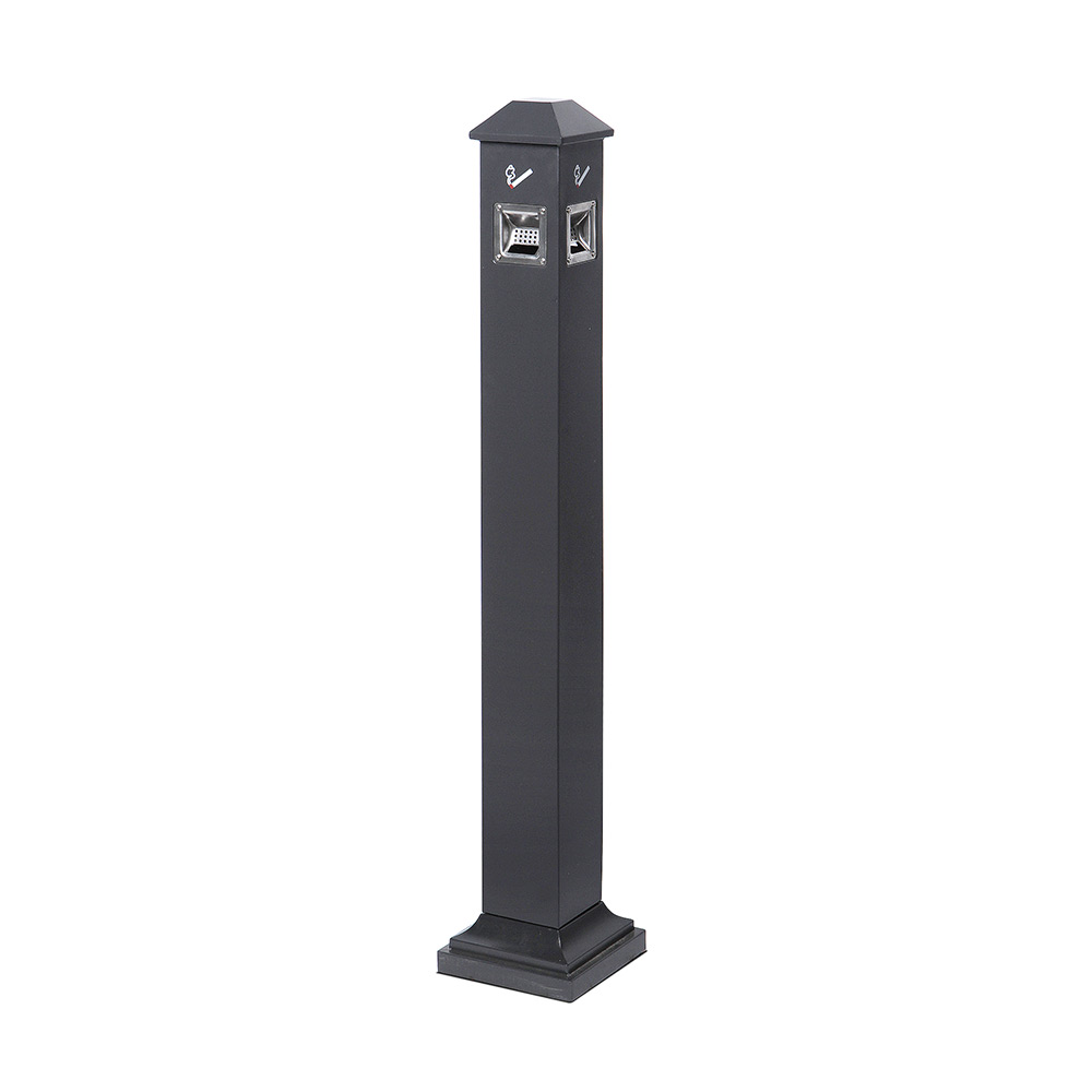 Cendrier Autonome, un cendrier sur pied moderne offrant un accès sur ses quatre faces ! Doté d'une structure robuste anti-vandalisme et d'une finition noire raffinée, il est équipé d'un verrou pour prévenir les usages abusifs. Parfait pour l'extérieur, il s'ouvre et se nettoie facilement. Il est possible de le fixer au sol grâce à des trous prévus à cet effet. Ce design fonctionnel et stylé est idéal pour les lieux publics. Éliminez les mégots au sol avec ce cendrier sur pied !