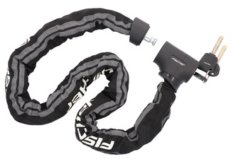 Description détailléeChaîne en acier robuste, maillons de chaîne à 4 côtés d'une épaisseur de 8,3 mm, longueur: 1.000 mm, avec gaine de protection en tissu, 3 clés, dont 1 avec LED intégrée