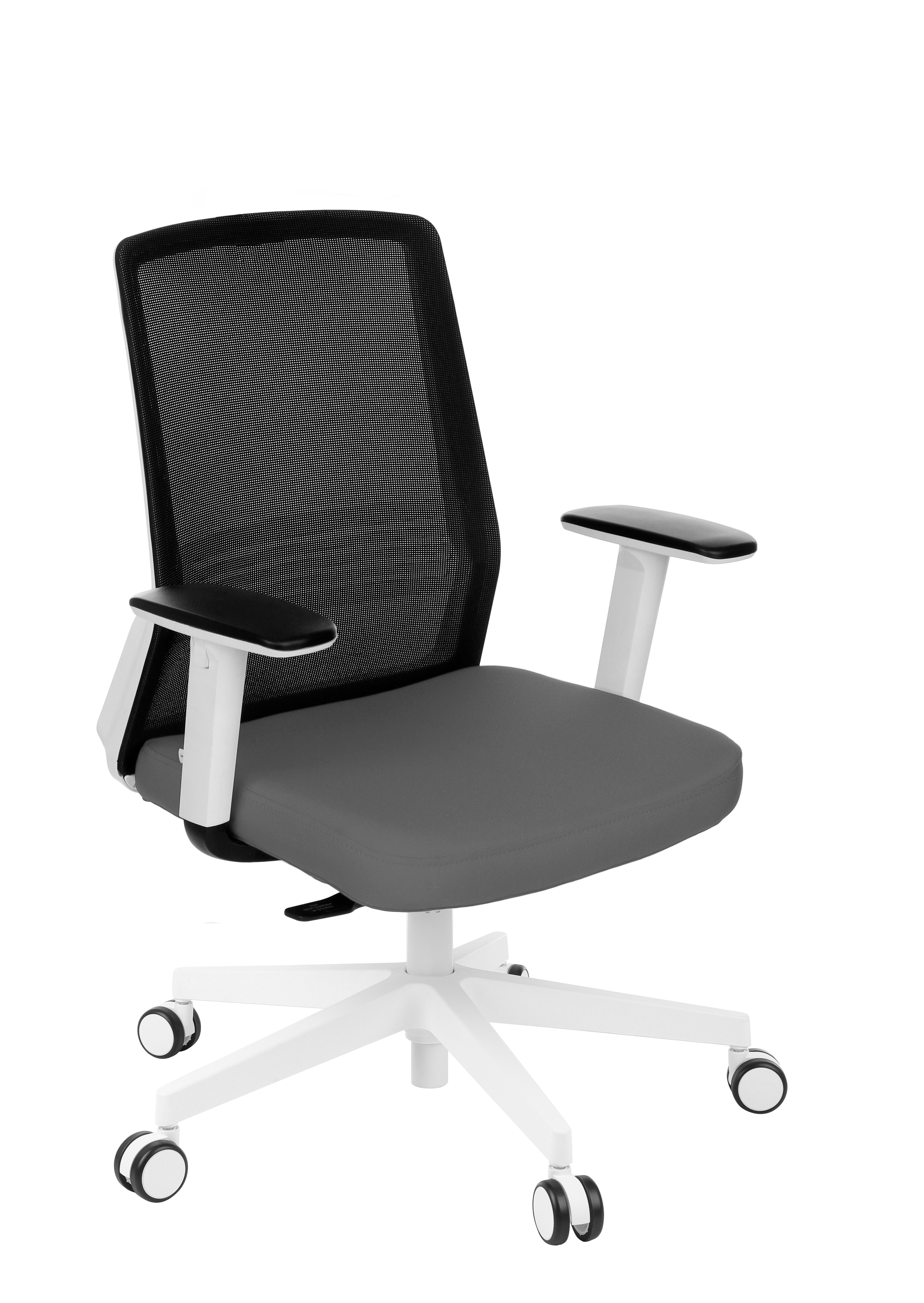 - Piétement en nylon blanc, avec roulettes Ø 60 mm (pour moquette et parquet).