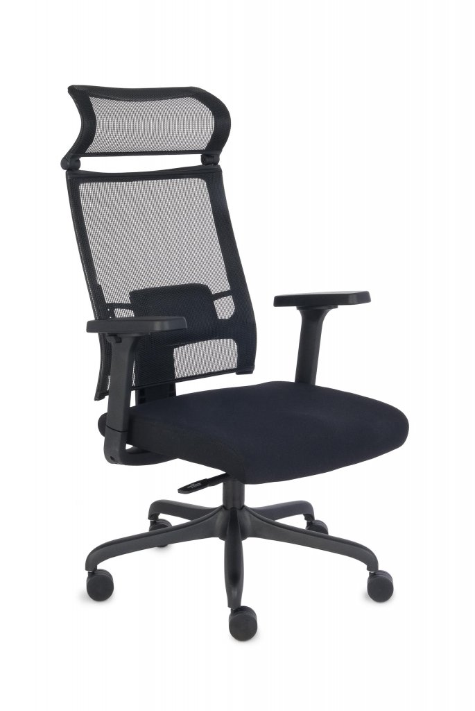 Dossier en maille, équipé d’un support lombaire réglable en hauteur et d'un appui-tête à angle réglable.